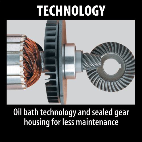 TECHNOLOGY : Oil bath technology and sealed gear housing for less maintenance