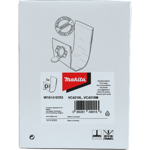 The Makita® Fleece Filter Bag is designed for use with the Makita® 11 Gallon Wet/Dry HEPA Filter Dust Extractor/Vacuum (VC4210, sold separately) to capture dust and debris. The bag features a fleece design for added durability. Like a first-stage pre-filter, the fleece filter bag captures larger particles and extends the life of the main flat filter. It installs quickly and easily for added user convenience.