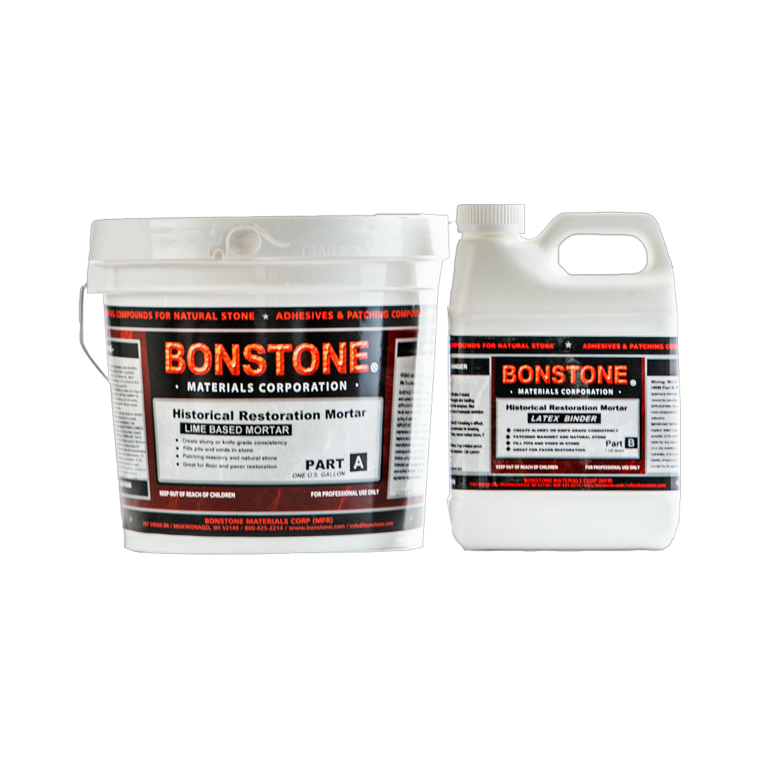 Historic Restoration Mortar (HRM) is a A two-component, fast setting, lime-based, latex modified patching mortar.