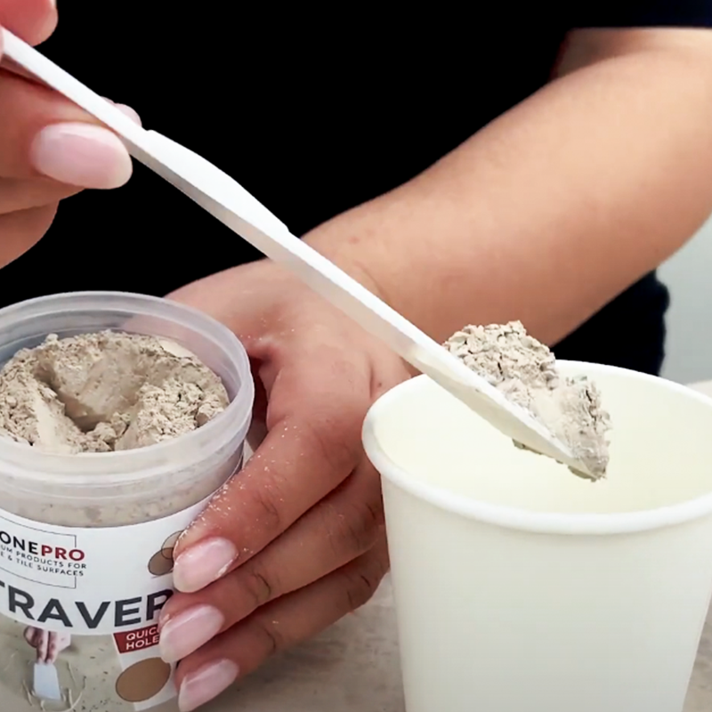 StonePro’s Traverfill Kit – an all-in-one solution designed to fill and repair small holes in travertine effortlessly. With this kit, you can say goodbye to the hassle of finding matching fillers or worrying about unsightly repairs. Our Traverfill